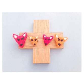 ハンドメイドのフェルトでできたキツネのブローチ。