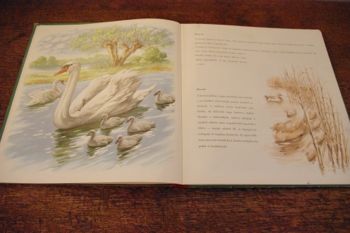 白鳥や馬や猫などのイラストに説明文が入っています。