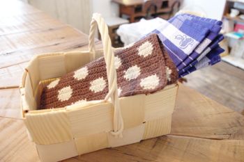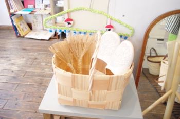 取っ手が左右についたパンかごです。パンを入れて食卓で使っても小物類を入れても素敵です。