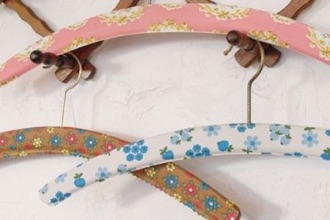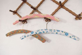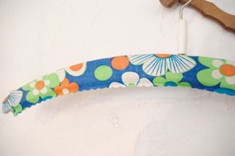 レトロな花柄プリントのビニールカバーがついたハンガーです。