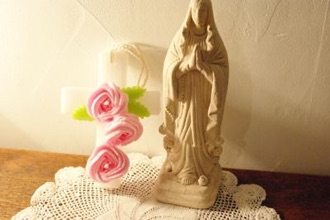 十字架にお花がついたシンプルで清楚なキャンドル。