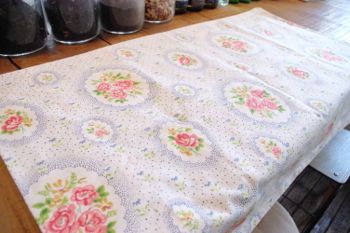 スウェーデンらしい花模様の刺繍が施されたテーブルクロス。大きめサイズなので使い勝手が良さそうです。