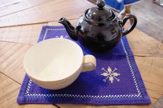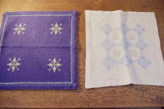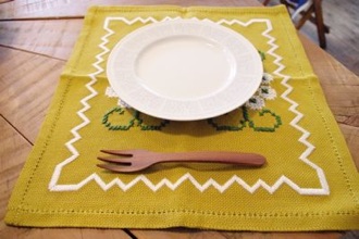 左側のネイビーの方はしっかりとした厚みがあり、右側はベージュに近い生成り色〜オフホワイトで柔らかな生地でできています。カフェマットとしても活躍しそうです。
