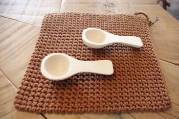 手のひらサイズの木製スプーン。紅茶の葉や小麦粉などをすくう時にぴったりです。