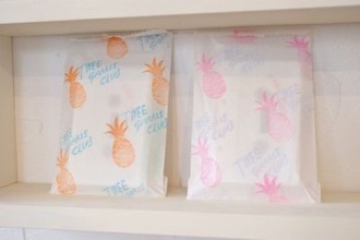 twee grrrls club 恒例のミックステープの新作が到着。今回はパイナップル模様がついたペーパーバッグ仕様。それぞれの自作のインサートも入っています。毎回自分たちでもお気に入りのカセットです。どうぞこれをBGMにとびきりの夏を楽しんでください。