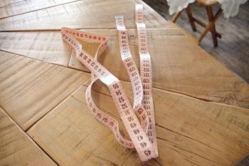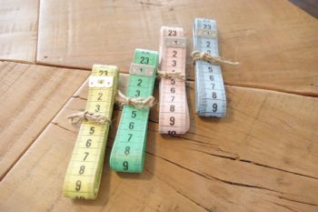 巻き取り式ではないタイプのメジャー。柔らかいビニール製でお裁縫にぴったりです。カラフルでかわいらしいのでディスプレイとしても。