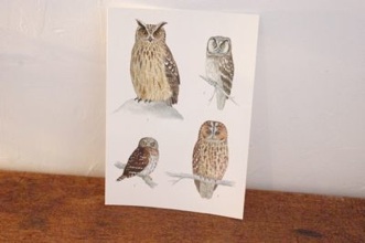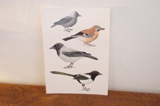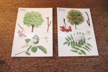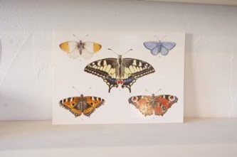 こちらはふつうの大きさのポストカード。植物や鳥や蝶などが図鑑のようなタッチで描かれています。