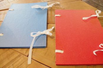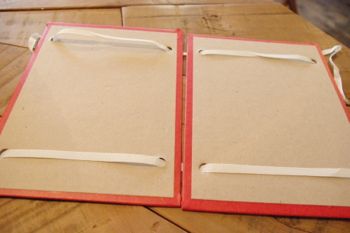 布リボンで綴じてしまうレトロなファイル。美術系の学生さん達が使っているようでした。丈夫なしっかりした素材でできています。