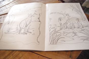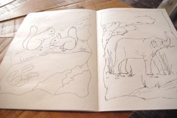 東欧の雰囲気いっぱいのぬり絵帳。中はざらざらの紙に素朴な動物の絵が描かれていて微笑ましいです。