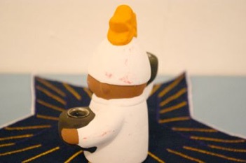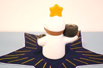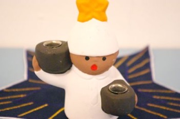 星を頭につけた天使?のキャンドルホルダーです。陶器製で重みがあります。素焼きで素朴な可愛らしさです。キャンドルは細いタイプのものが入るサイズです。そのまま置き物として飾っても素敵です。