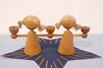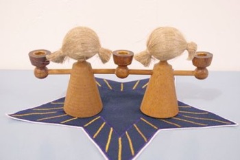 木製の双子のキャンドルホルダー。
