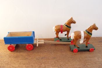 ドイツ(旧東ドイツ・GDR) ヴィンテージ 1960年代 馬のおもちゃ 馬・荷台セット 7800 yen