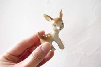 陶器製の小さなバンビ。上目遣いの瞳がなんともかわいらしいです。