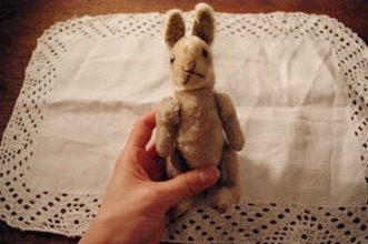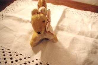 コペンハーゲンのアンティークショップで見つけた小さなぬいぐるみ。100年以上前のアンティークです。手のひらサイズですが造りがしっかりしていて、表情もとても良いです。