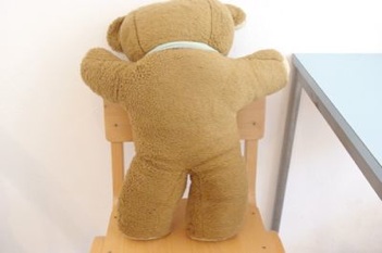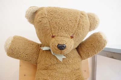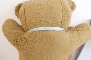 こちらはポーランドからやって来たクマのぬいぐるみです。ばんざいをしたポーズがかわいいレトロなクマさん。しっかりとした厚みがあり抱き心地も抜群です。首の後ろ部分にチャックがあります。中身は綿です。目と鼻はプラスティック製のパーツです。おそらく 1980年代に作られたぬいぐるみです。
