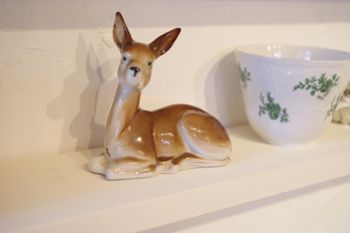 愛くるしい表情のバンビの置き物。陶器でできています。