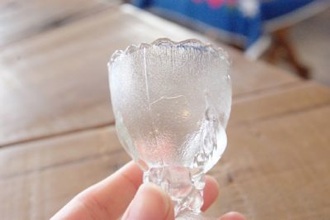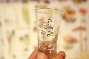小花模様の手のひらサイズの小さなグラス。花を活けたり小物入れなどにも。