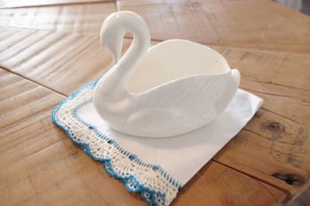 白鳥型の陶器製石けん置き。小物入れや置き物としても。