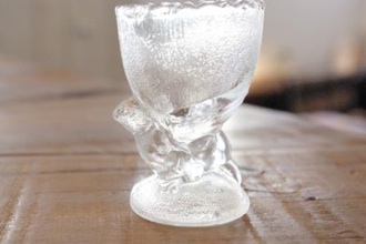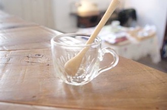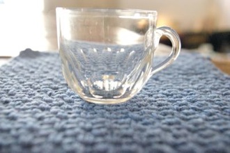 取手がついた小さなグラス、コロンとしたフォルムが手になじみます。