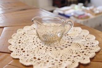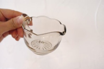 ソースをちょっと入れたい時に便利だと思います。少しグレイがかったガラスと、波々の縁取りがかわいらしい。