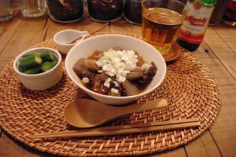 昨日のおつまみは「牛すじ煮込み・オクラのおひたし」( 500円 ) でした。