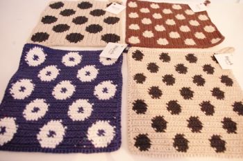 鍋つかみやポットホルダーとしてはもちろん、インテリアのアクセントにも。