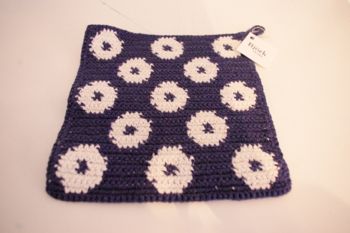 水玉模様がかわいいコットンの手編みの鍋敷き。
