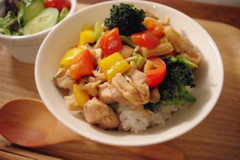 鶏肉とパプリカ・ブロッコリー・きのこのオイスターソース炒め