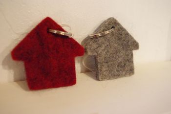 スウェーデンのウールのみを使用しているという Ullecentrum のキーホルダーとコースター。
